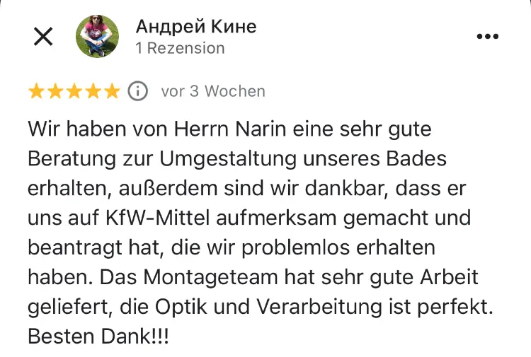 Um Ihnen ein maßgeschneidertes und verlässliches Angebot erstellen zu können, benötigen wir die Aufmaße zu Ihrem aktuellen Bad, Ihren genauen Standort und Ihre individuellen Wünsche.